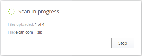 Figure 7. Current progress for the scanning of local files If necessary, you can abort the scanning by pressing the Stop button. Once the scanning is completed, a report about the scanning of the uploaded files will be displayed on the file scanning panel.