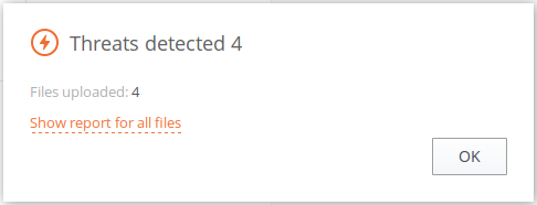 Figure 8. Results for the scanned local files If multiple files were uploaded, an extended report about the scanning will be available. To see the extended report, click the link that says Show report for all files.
